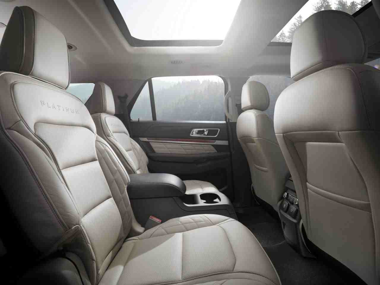 Apart from its imposing dimensions, which create a powerful impression at first glance, the 2016 Ford Explorer Platinum’s exterior is a suppler reinterpretation of the previous iterations of the vehicle. More aerodynamic and more modern looking, its satin chrome grille rests between a pair of falcon-like Halogen headlamps with signature LED lighting. Elegant chrome ornaments decorate the length of the car’s body, underlining its stature; in the rear, the silver dual exhaust tips subscribe to the same theme of refinement.