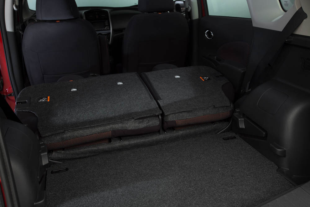 Often with these smaller rides, the idea of heading out for an adventure with friends seems a bit far fetched. The storage space is always a bit confined, and the backseats are never comfortable for any grown adult with legs. While the front seat passengers are always taken care of, the back seat often comes as an afterthought or emphasis on the modern family for kids. And this is where the Versa note stands out the most, but the backseat stereotype may have been broken. Right off the line, I will say that I have never seen space and legroom in a small car like I did in the Versa Note. And by this I mean that I was able to sit in the back seat comfortably with more legroom then I see in larger sedans and SUVs. And that is with my seat all the way back. And while the storage space in the rear does get compromised a little bit, Nissan has offset that with a slew of other storage solutions throughout the whole car, showing a well thought out idea.