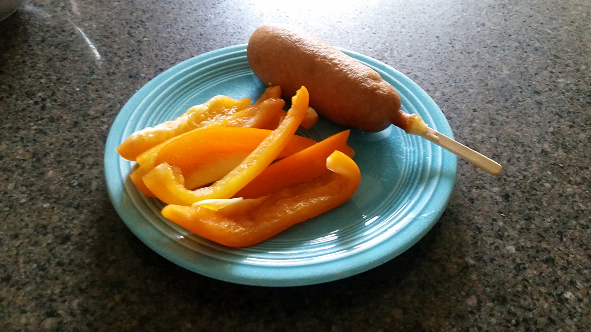 These are often the tough ones, filled with meetings, study hours, and prep, all back by an empty stomach. Usually our nights head late, ending close to midnight, so we tend to eat dinner a bit later to adjust for that. That leaves time for the after-school snack, and when that little teacher comes home, my first goal is to get some food ready for her as she grades that day’s work. A small snack always helps, and lately we have both been hooked on the State Fair® Classic Corn Dogs alongside some cutup veggies. Also picked up during our run to Walmart, it always proves to be a quick and delicious snack to have ready to go when needed.