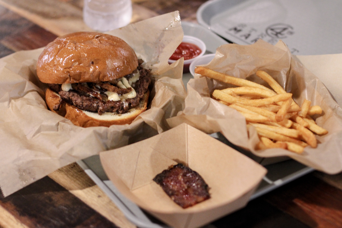 In the dead center of DTSA lies the 4th Street Market, a patio where foodies can rejoice. From craft beer, ice cream sandwiches and tacos, this indoor and outdoor food court has everything you want to eat. This past week I was invited to try their newest addition to the court, Pig Pen Delicacy, a savory take on American comfort food. Now if you love bacon and pork, this place is a must try. I got the chance to have their Maple Bacon Jam burger, which consisted of a medium cooked patty, Havarti cheese, caramelized onions, onion strings topped with chive aioli sauce and bacon jam. Now I don’t know what exactly bacon jam is but I would definitely have it again because if could define the burger in one word I’d have to go with umami. You can never go wrong with a savory burger. With every great burger to be eaten, there needs to be great fries to pair and these fries are far from disappointing. Every single fry was crispy at every bite. Though what I wish I had tried before they sold out were their Crispy Pork Belly Fries topped with a fried egg. I mean look at the pictures of it on their Instagram. You can count on me coming back for that.