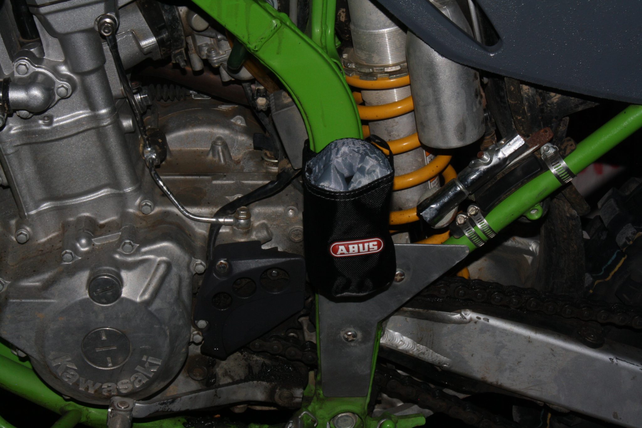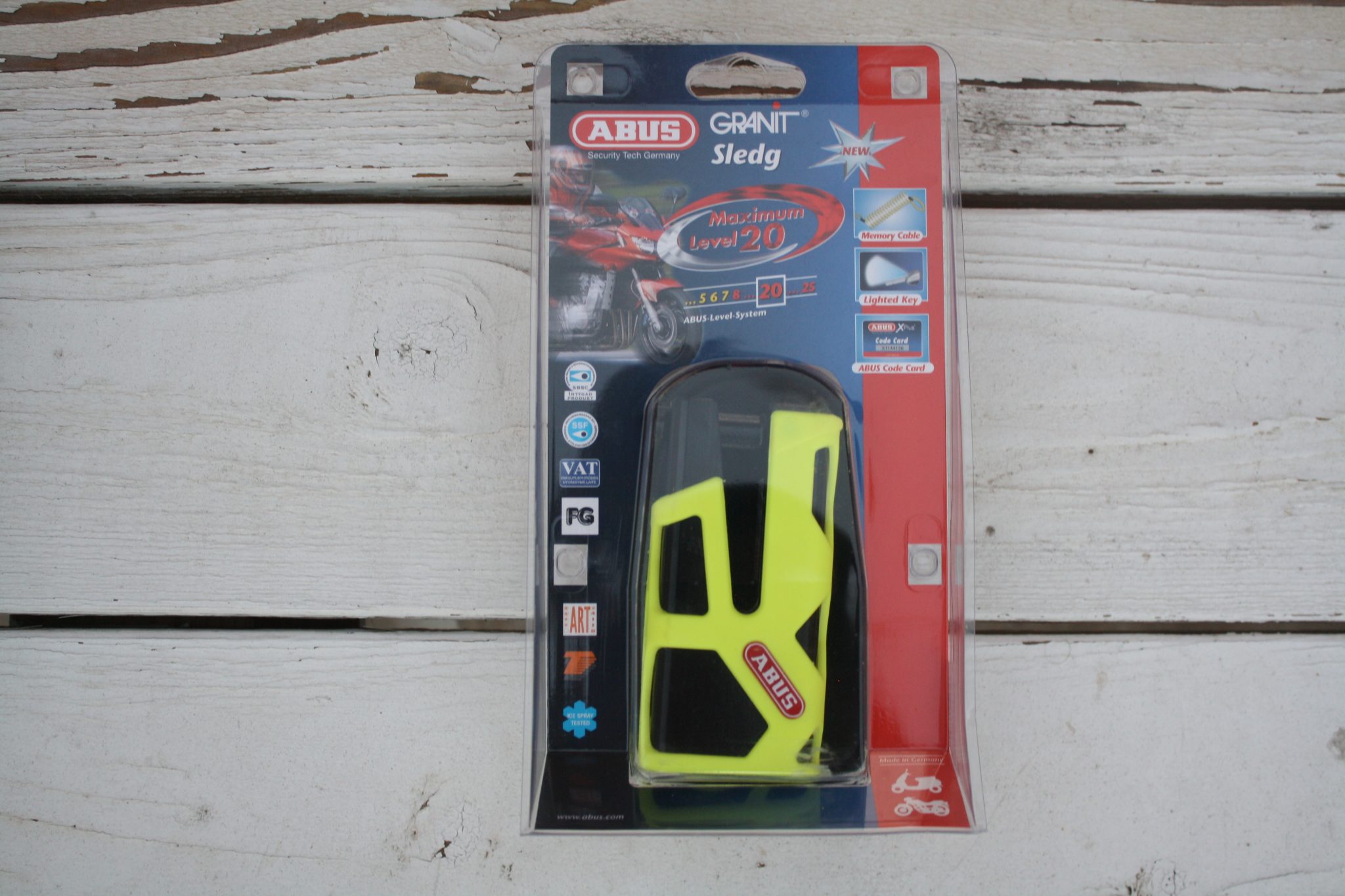 Luckily, the good team over at ABUS have worked to calm me down. They explained that while motorcycle are much easier to steal than a car, there are two main things you can do to protect your property. The first is to not be an easy target. DON’T park your bike night after night in hidden or dark areas behind an apartment or property. DON’T leave clear room for trucks to back up to your bike and roll it onboard. And DO have obvious security measures to dissuade even an attempt at grand theft auto. Abus’s full lineup of motorcycle locks are brightly colored, obvious, and many come with stretchable cord to secure from the tire to your handlebars. This not only reminds you to disengage the lock before hurting yourself, but also shows everyone that the bike is protected with a bright neon yellow “Aw hell no!”