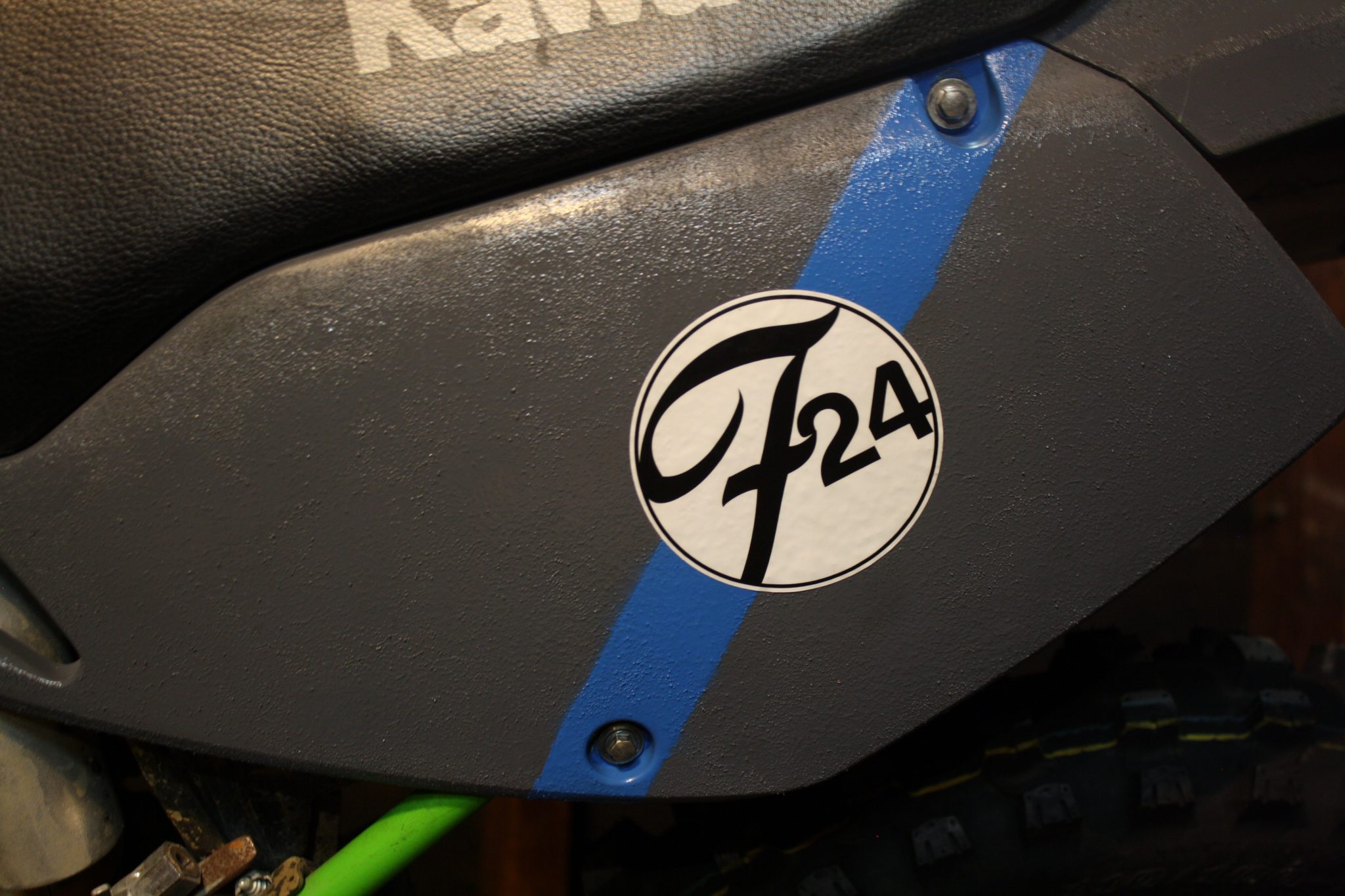 Major mods to the exhaust, seat, and possibly tank are coming, but for now the aesthetic changes will make this thing drivable around town without looking like a hillbilly who got lost. Gone are the massive front fender and headlight. Gone are the tribal stickers and bright colors. What remains is a design that I will defend as wholly my own. Next up is some custom leatherwork on the seat and a few other places, then on to trying our hands and creating a custom exhaust. Should be fun! But in the meantime, I present to you FactoryTwoFours off road tracker: